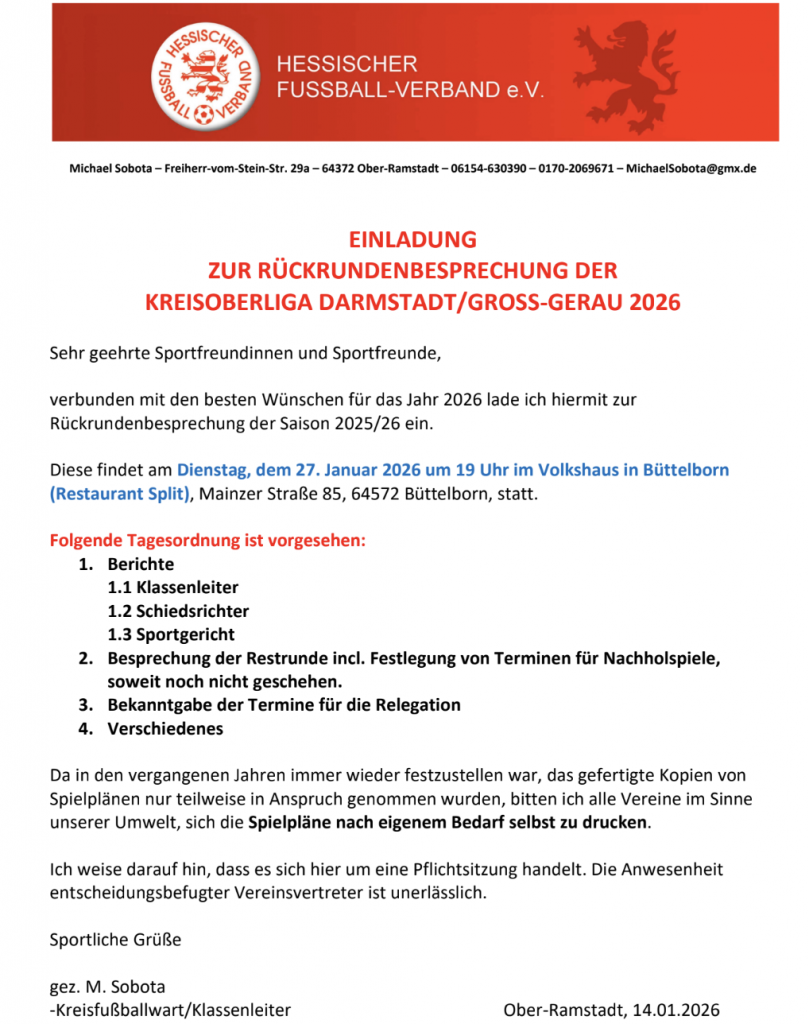 verbunden mit den besten Wünschen für das Jahr 2026 lade ich hiermit zur Rückrundenbesprechung der Saison 2025/26 ein.